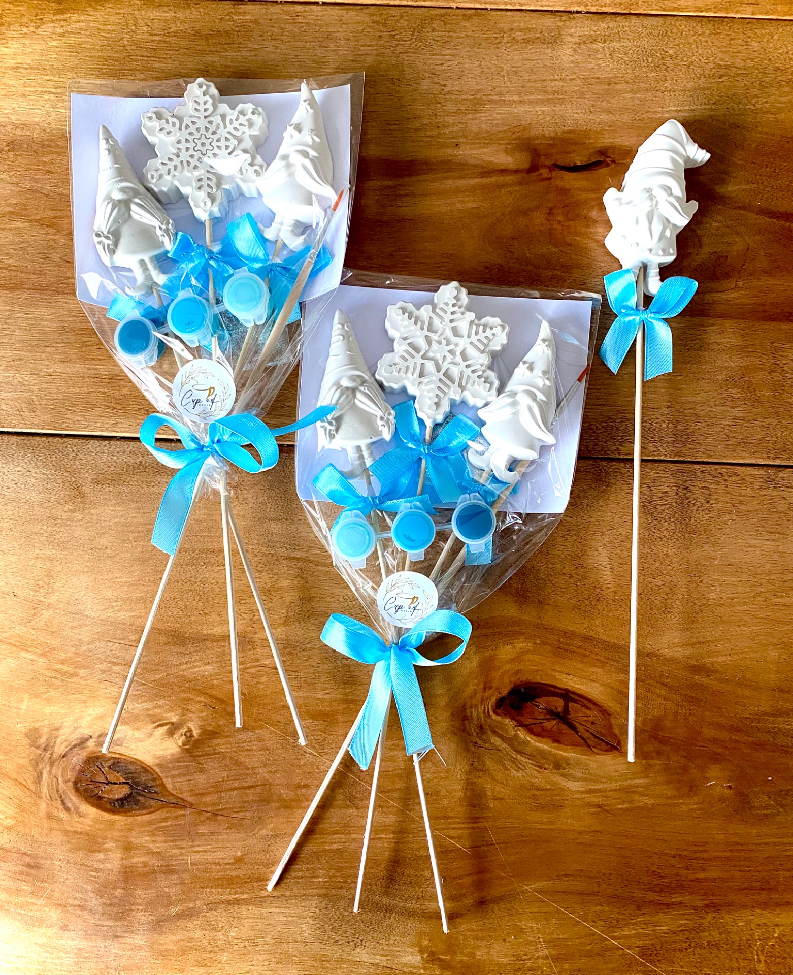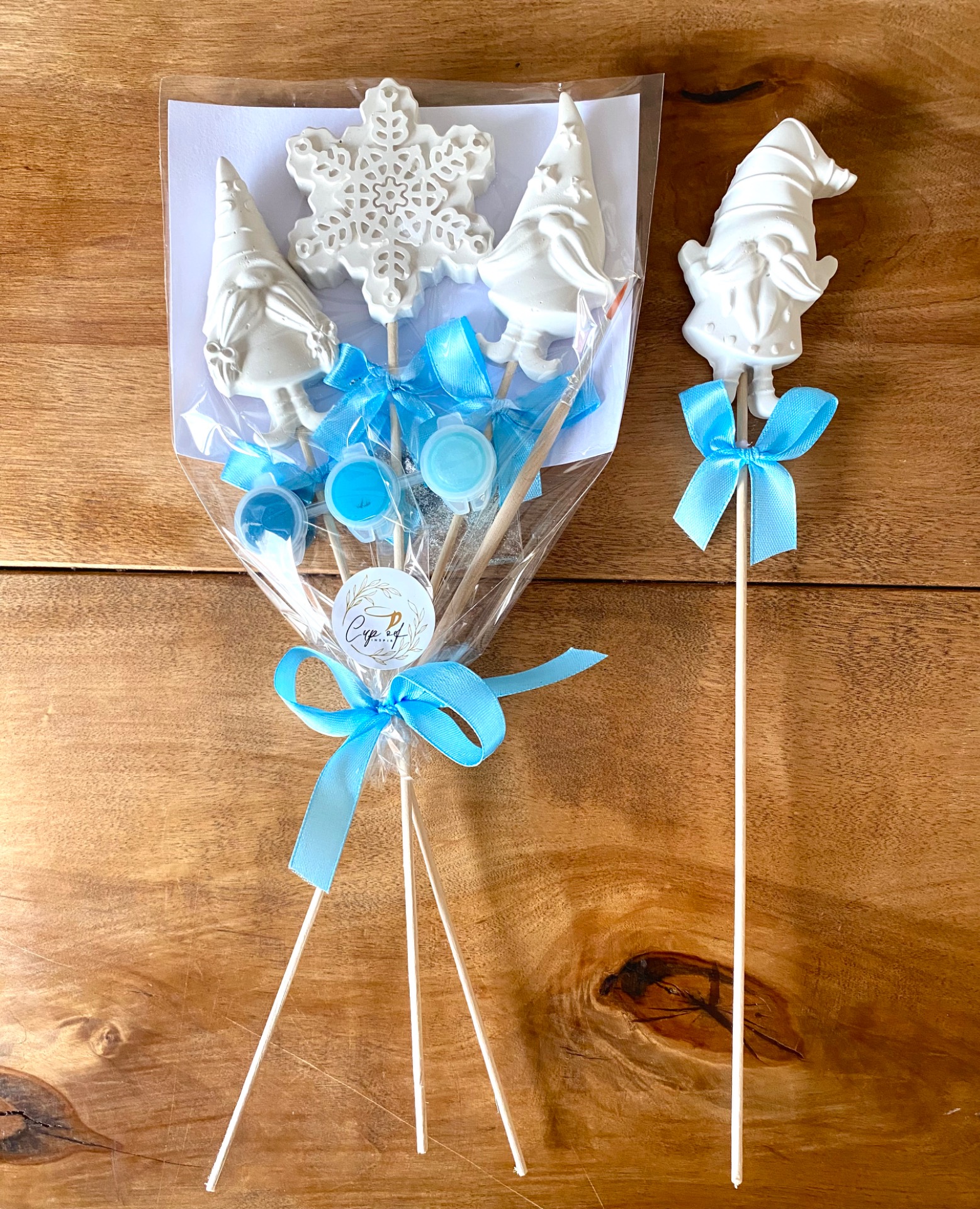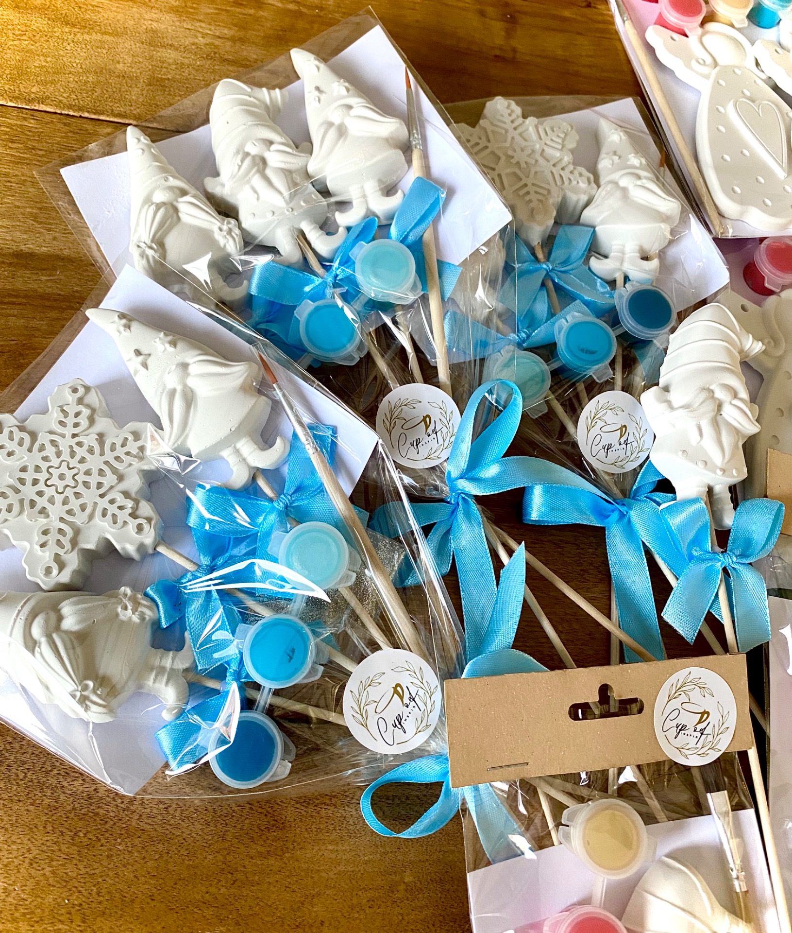 Balíček pro tvoření, který obsahuje sádrové odlitky, akrylové barvičky, štětec.