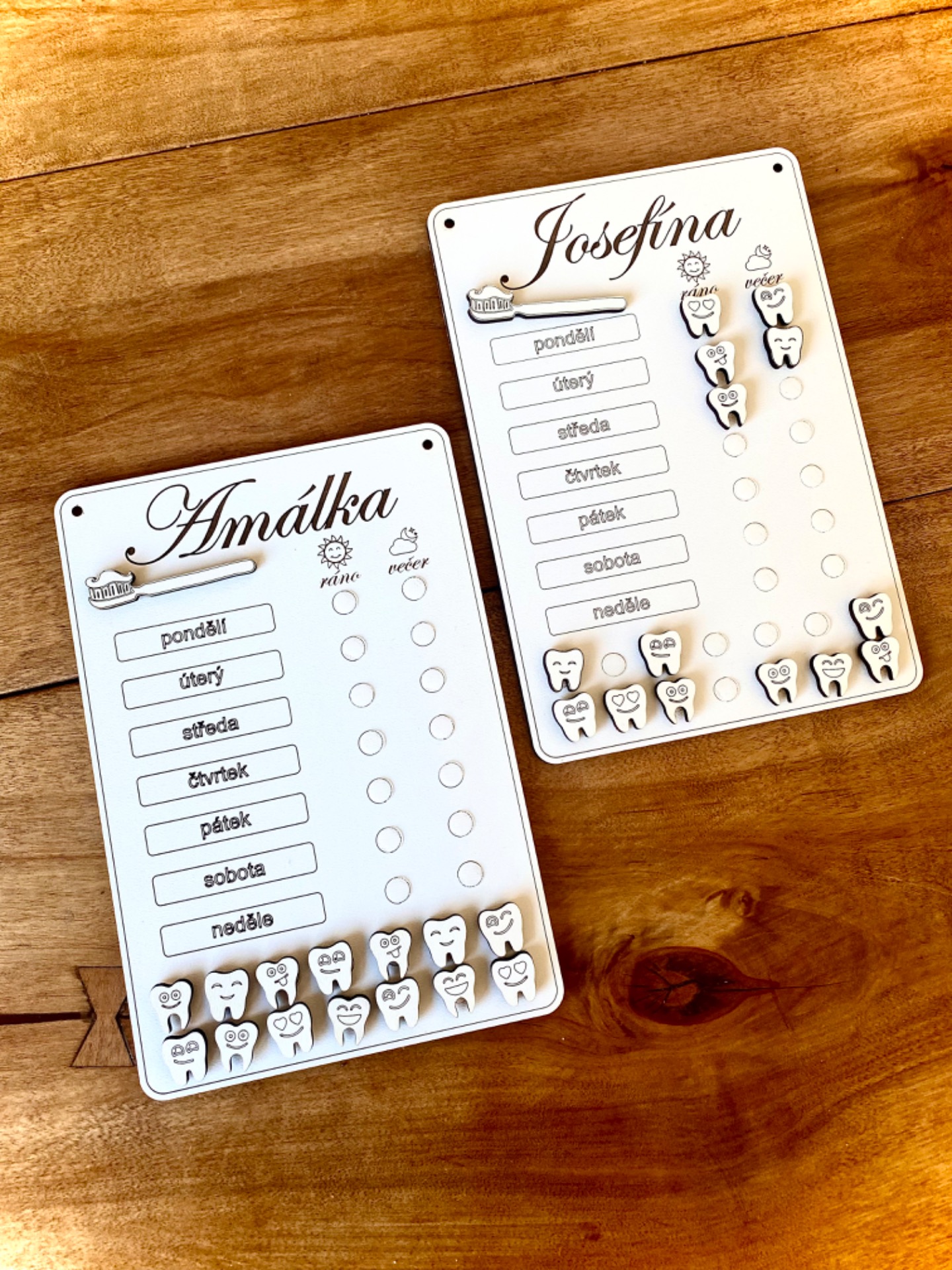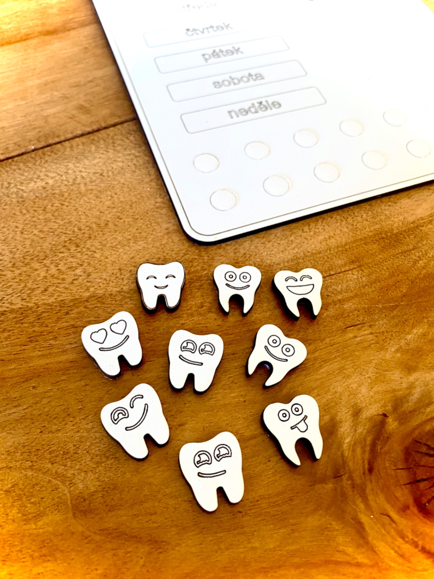 Zubní kartáček si děti přilepí na nejbližší místo plánovaného čištění a nasledně nahradí zoubkem hned po tom, co si je vyčistí. Celý týden, se proto mohou touto zábavnou formou těsit a zaznamenávat, jak si zoubky čistí.